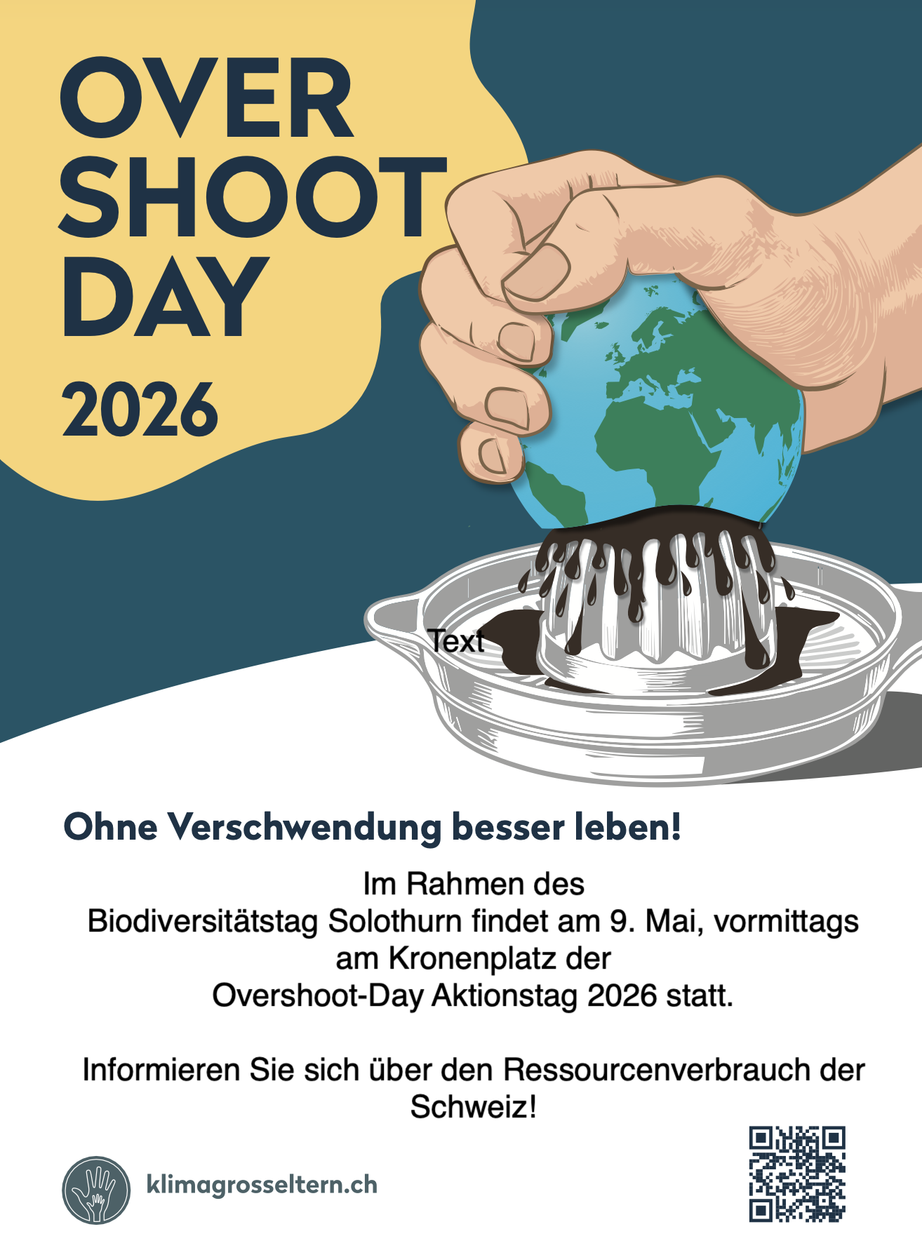 Wir Solothurner sind dieses Jahr wieder dabei. Wir werden vor der St.Urs Kathedrale Samstagmorgen 24. Mai über den Overshoot-Day informieren und Unterschriften sammeln. Weiter werden wir mit unserer Kleiderwaage auf das Kleider-Konsumverhalten aufmerksam machen. Und zu guter letzt können wirder Mützen und Stirnbänder gekauft werden. Herzlich willkommen!