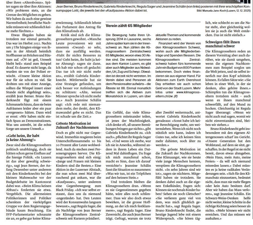 Klima-Grosseltern-Regionalgruppe Zentralschweiz Erschienen in zensurierter Form am 29.09.23